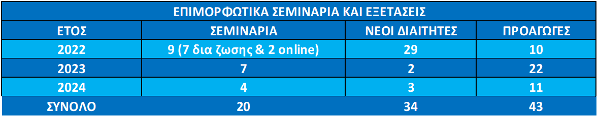 Σύνολο τριετίας: 20 σεμινάρια – 34 νέοι διαιτητές – 43 προαγωγές